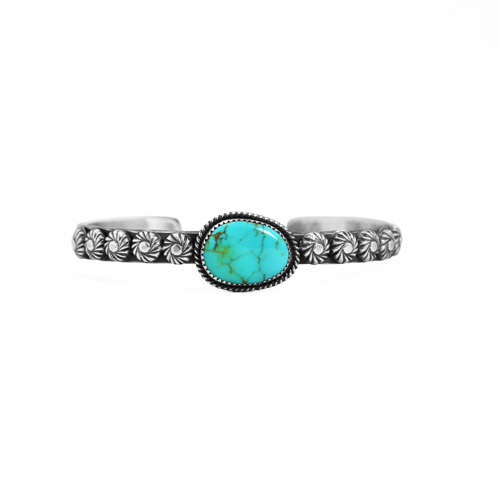 Kingman Web Turquoise Stamped Cuff Bracelet