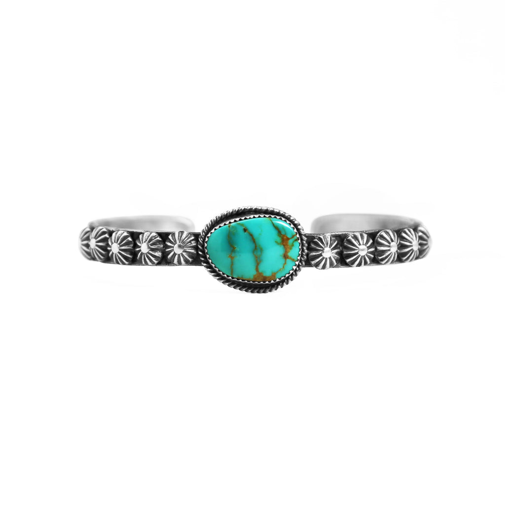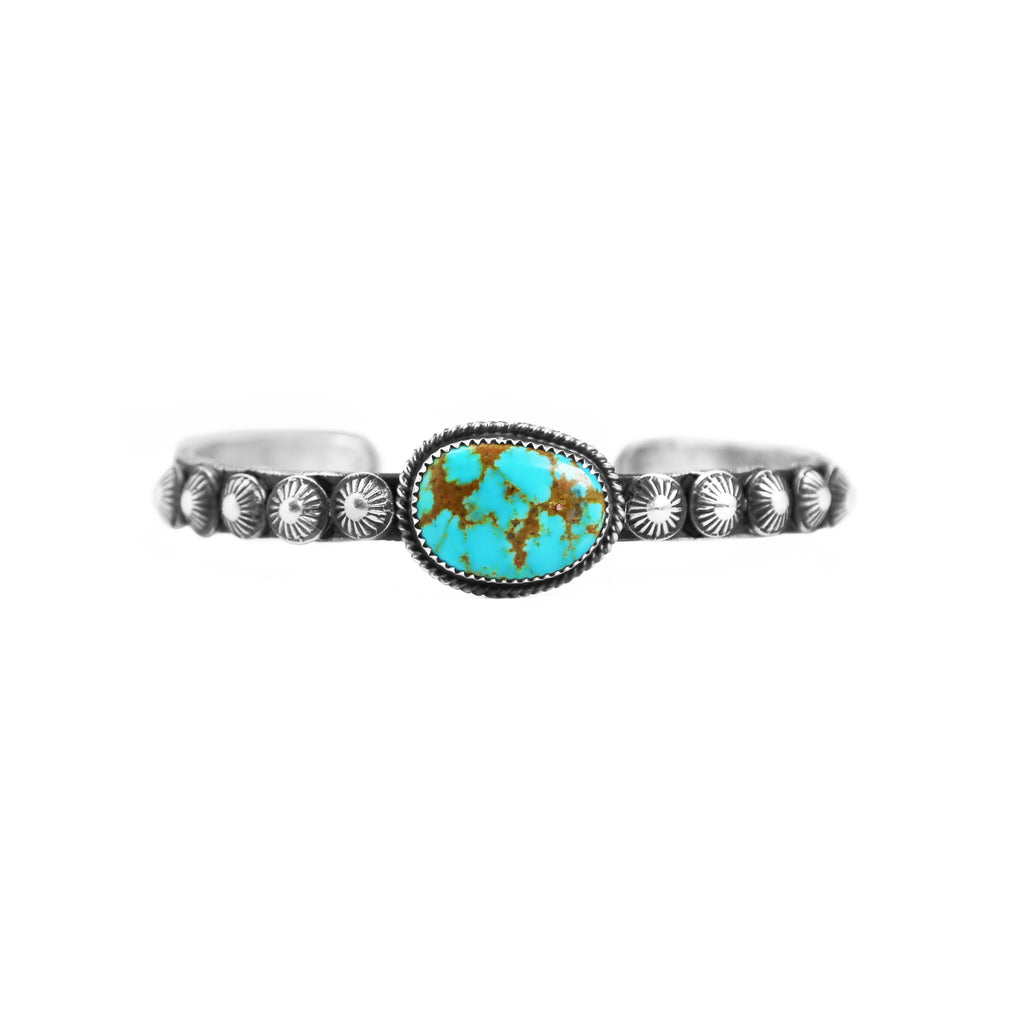 Kingman Turquoise Sandcast Concho Stacker Cuff Bracelet