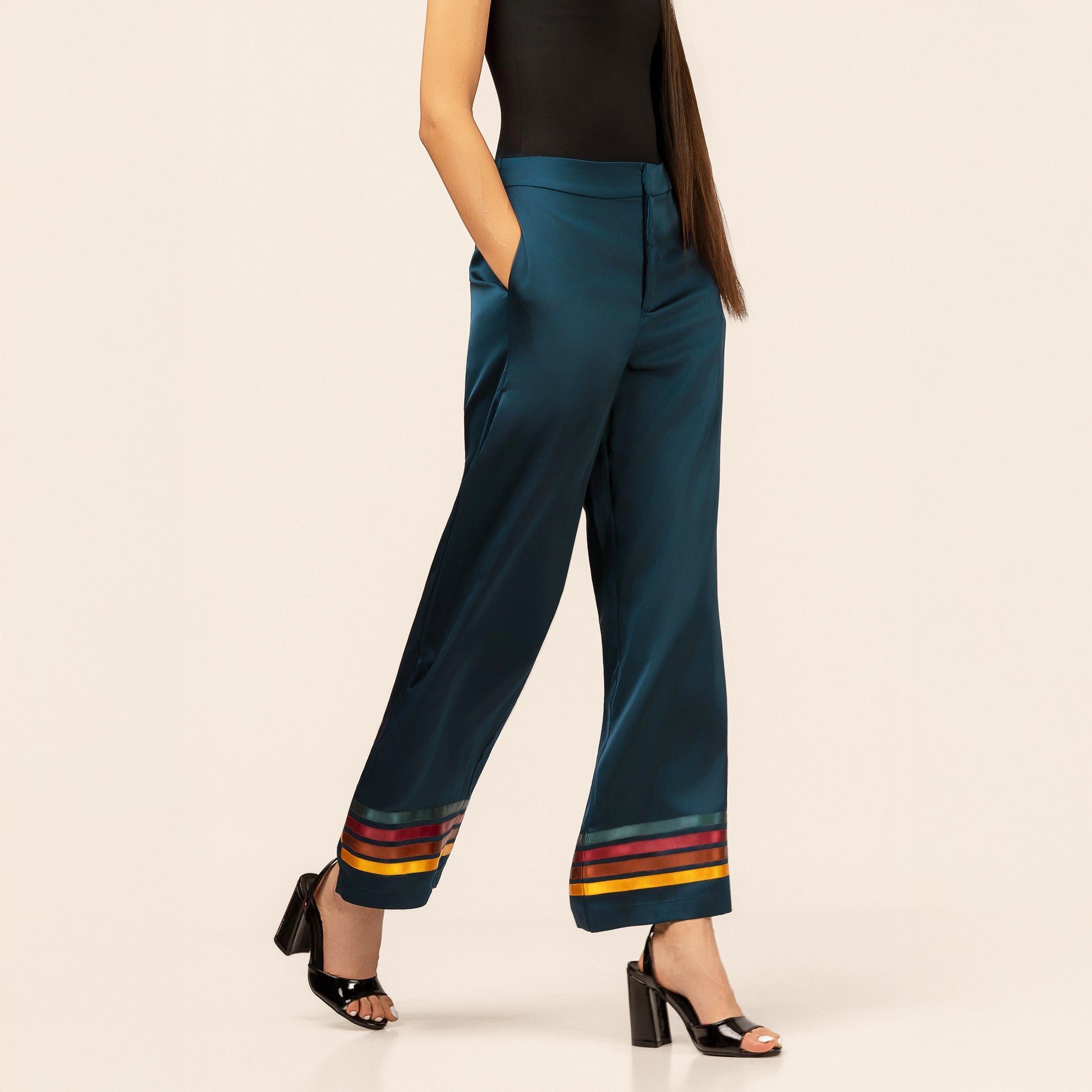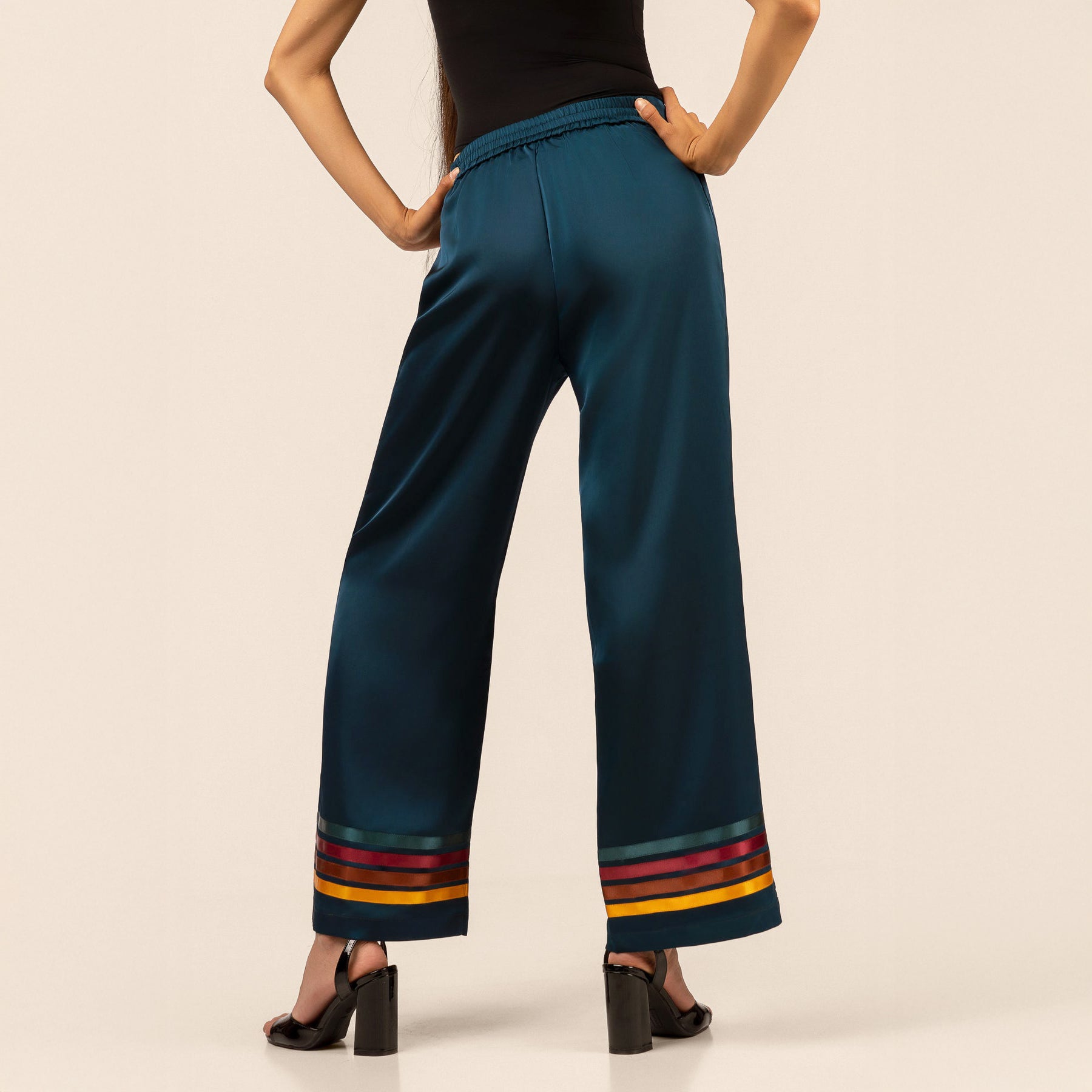 Make a statement with its ribbon hem detail, and enjoy the silky fit with an adjustable elastic waistband for comfort. Dress them up with the matching Teal Satin Ribbon Blazer or paired with a fitted tee and sneakers for a cool girl polished look.