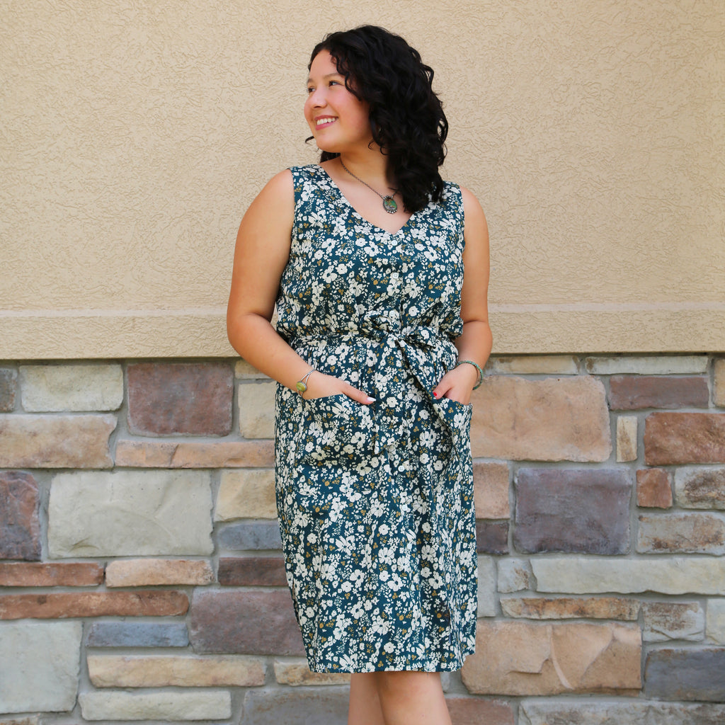 Sleeveless Button Front Cotton Dress - Pine Green Floral