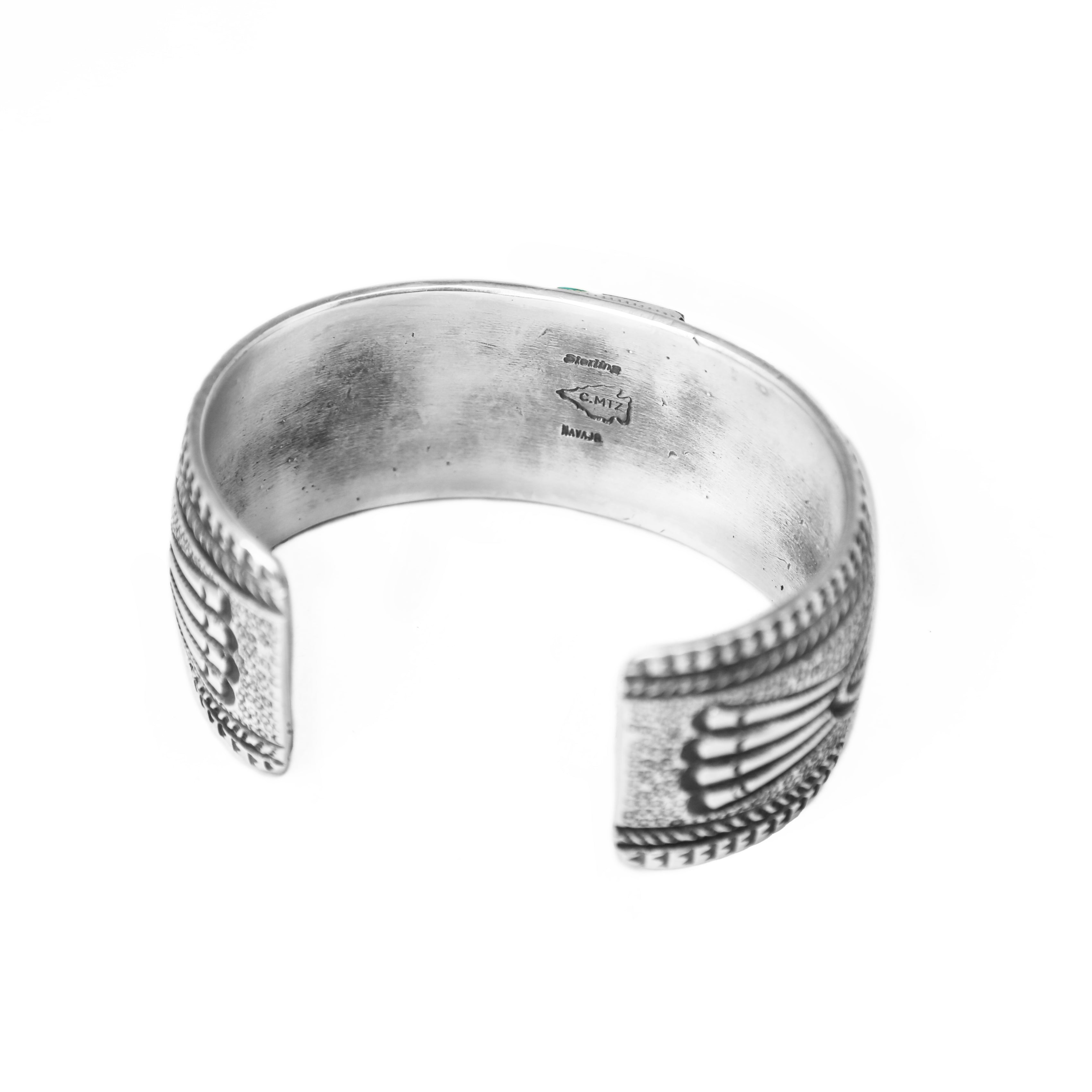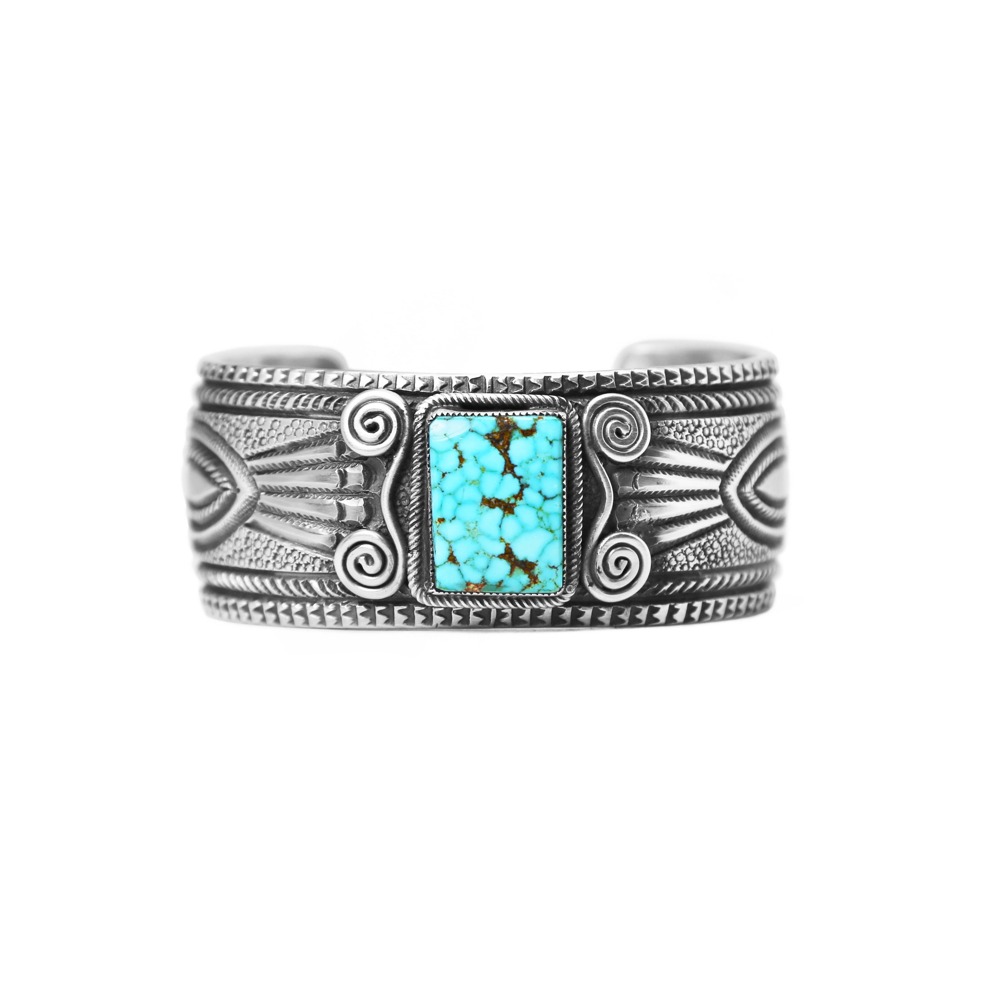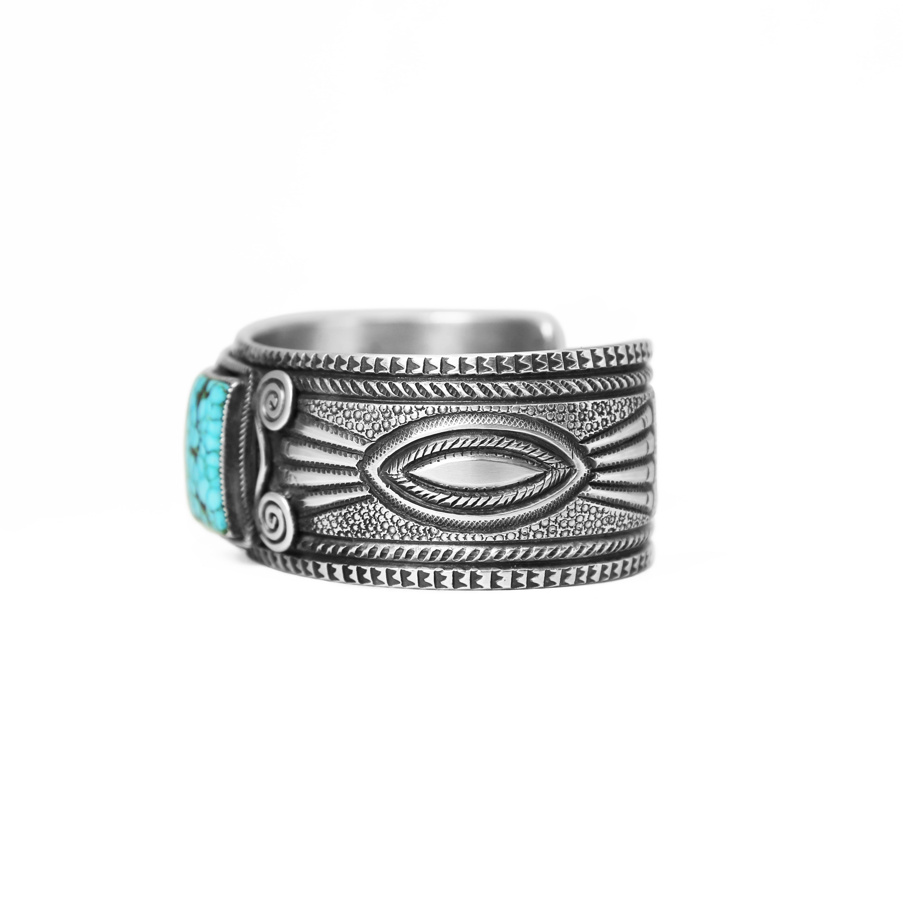 Kingman Turquoise Stamped Navajo Silver Cuff Bracelet
