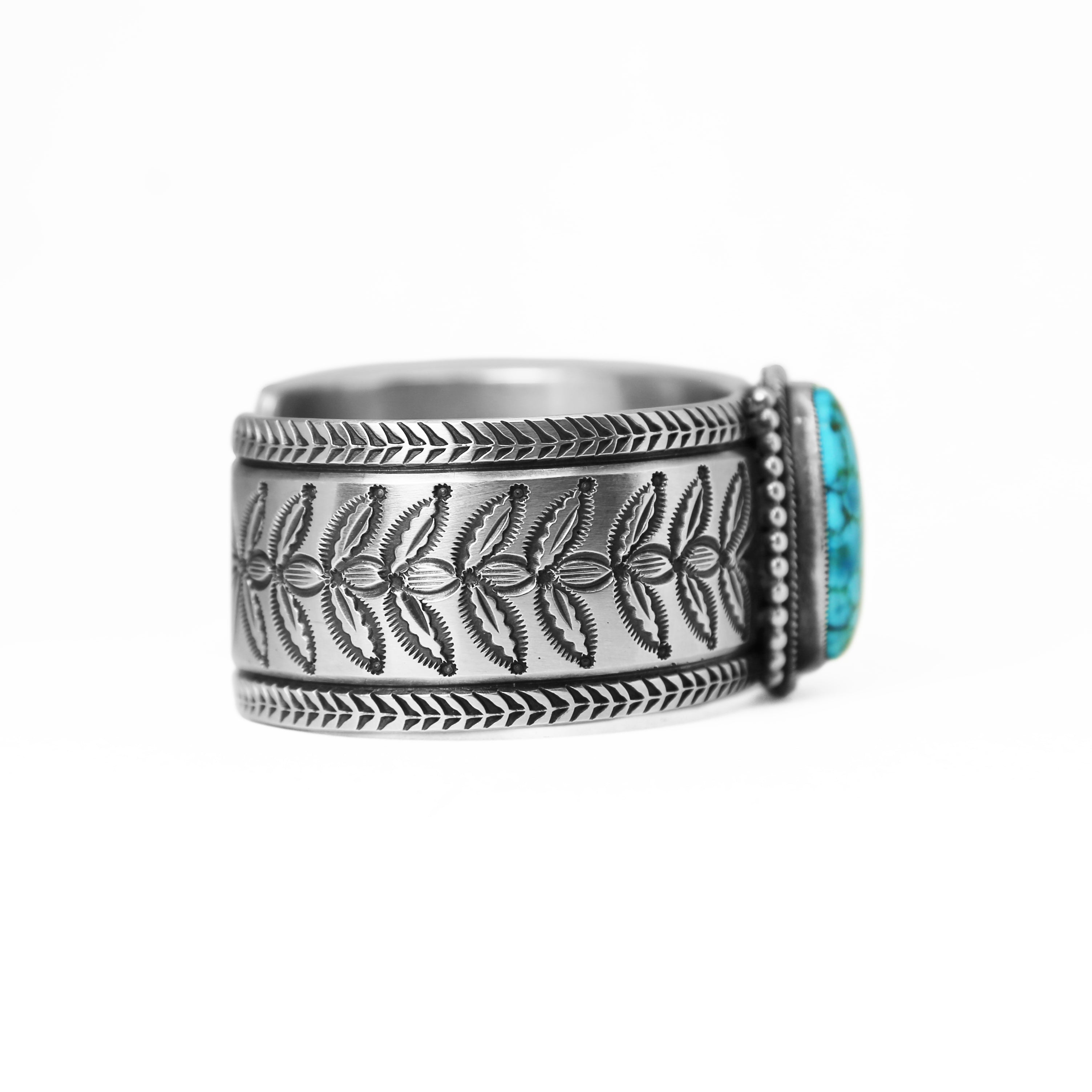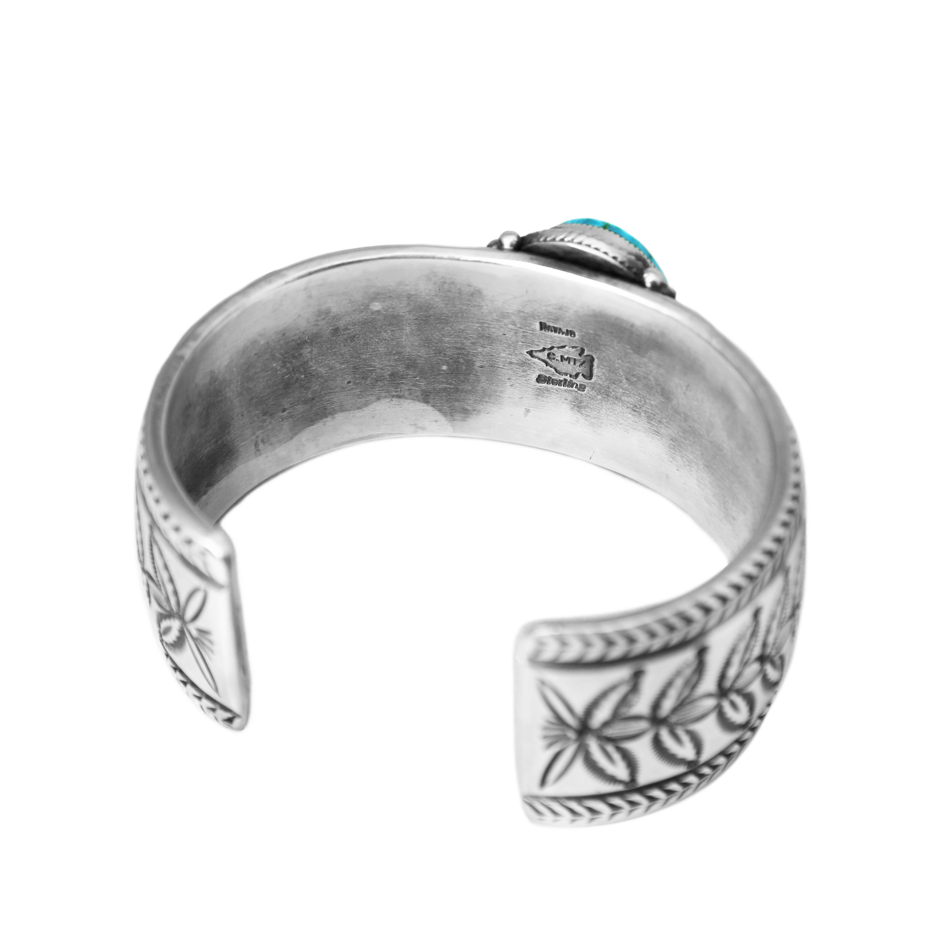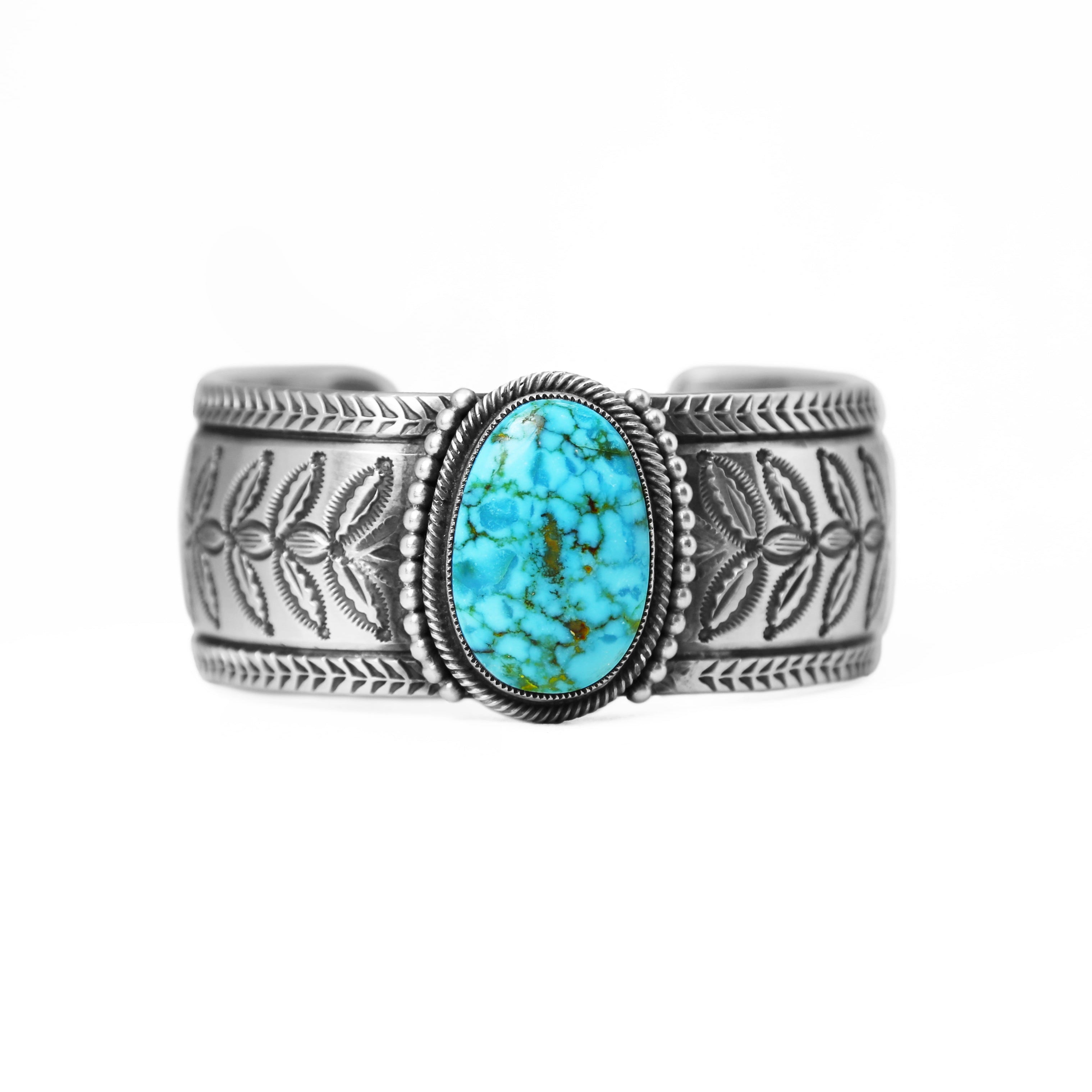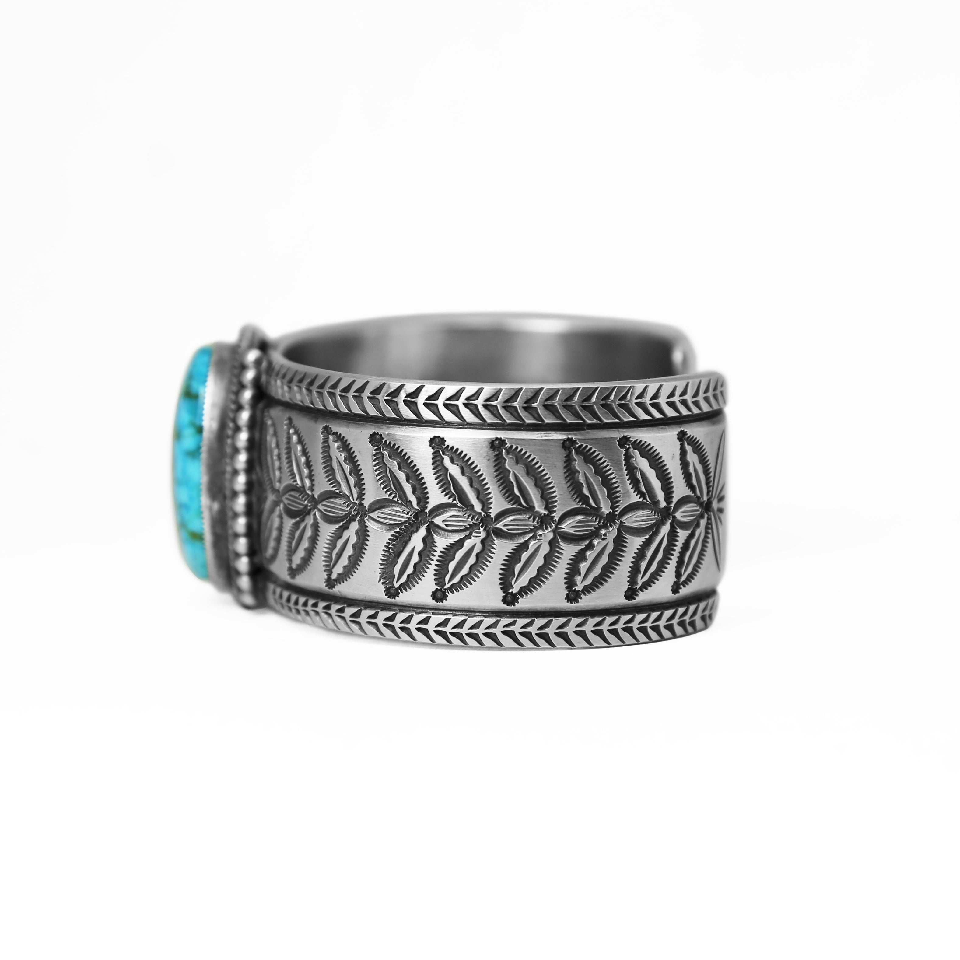 Kingman Turquoise Stamped Navajo Silver Cuff Bracelet